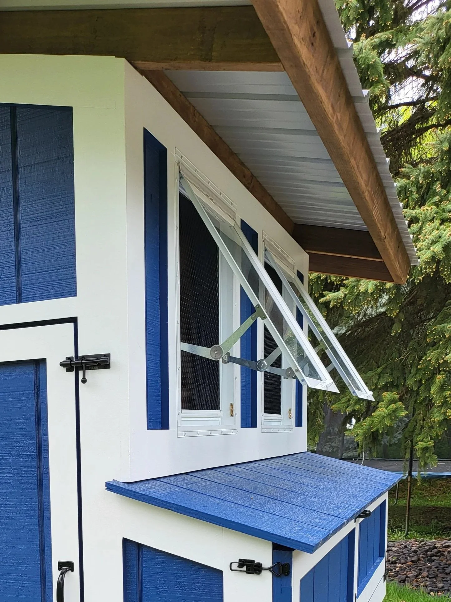 Windows open from the exterior, allowing you to manage airflow without climbing into the coop — because practical design matters.